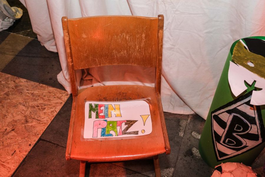 Zum Abschluss der Station schau mal hin, da steht ein leerer Stuhl. Das ist dein Platz an der Tafel Jesu. Wenn du möchtest, kannst du dir einen Stift nehmen und deinen Namen oder den Namen deiner Gruppe darauf schreiben.