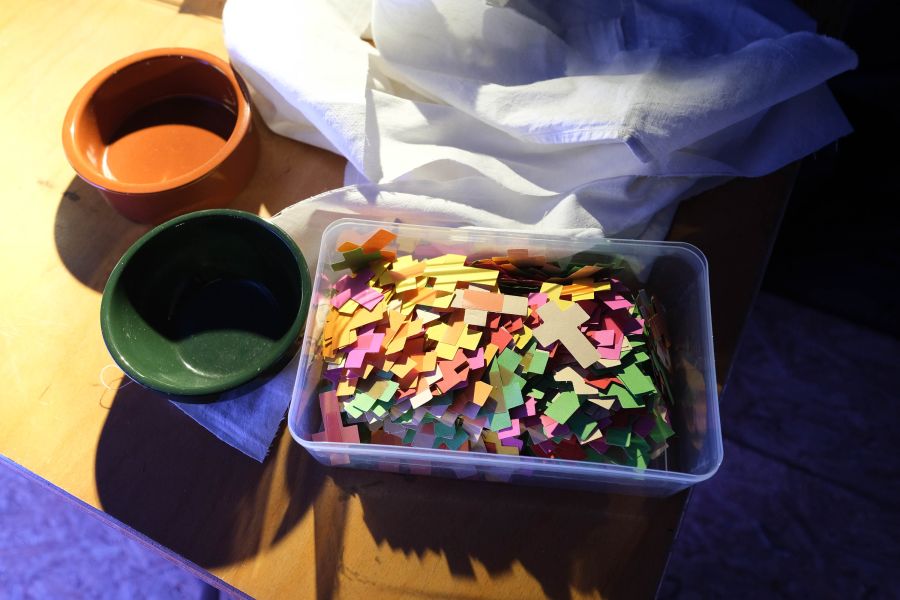 Jetzt darfst du den Namen eines Menschen, den du vermisst und an den du denkst, auf ein Kreuz schreiben.